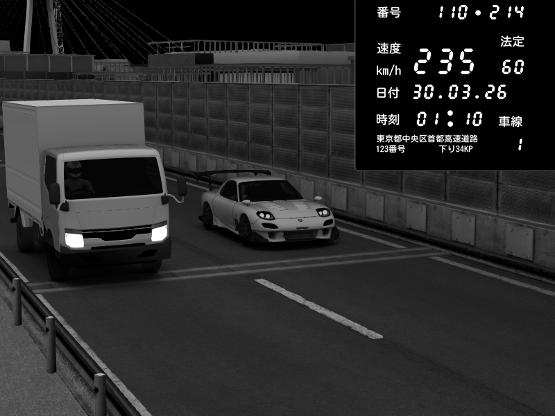| 2026/03/30 01:10 | K1上り 羽田 | 235 / 60 km/h | Mazda RX-7 FD3S RE Amemiya | CAPTURE |