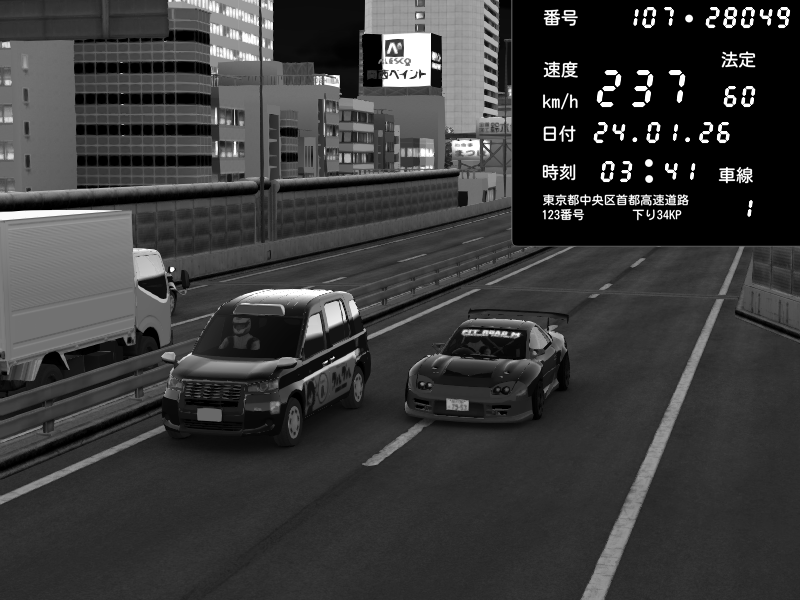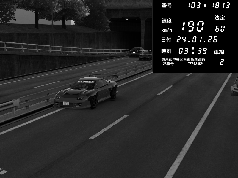 | 2026/01/24 03:39 | C1内回り 銀座 | 190 / 60 km/h | Pit Road M - Mitsubishi GTO Twin Turbo | CAPTURE |