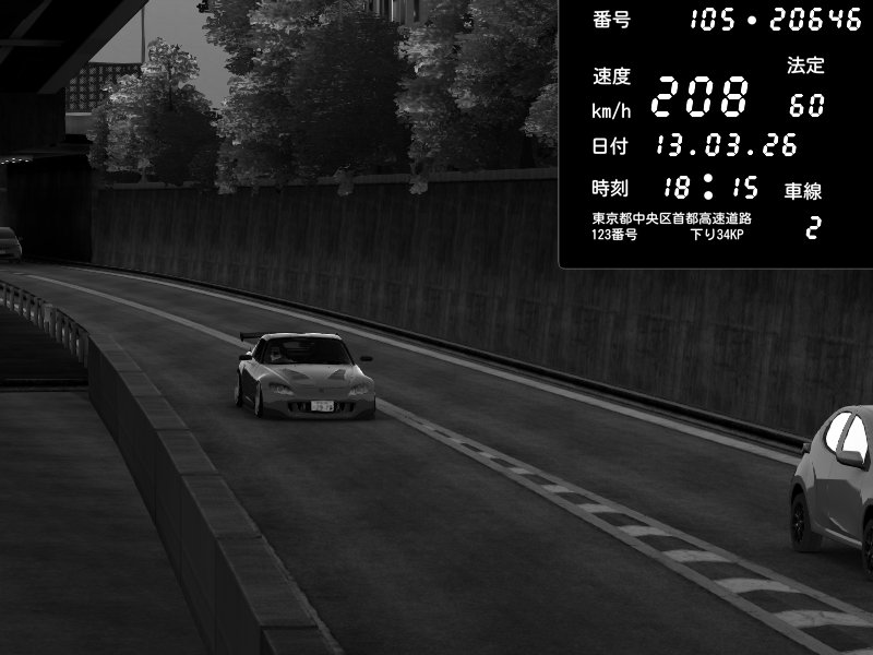 | 2026/03/13 18:15 | C1外回り 京橋 | 208 / 60 km/h | Honda S2000 (AP2 - Legendary) | CAPTURE |