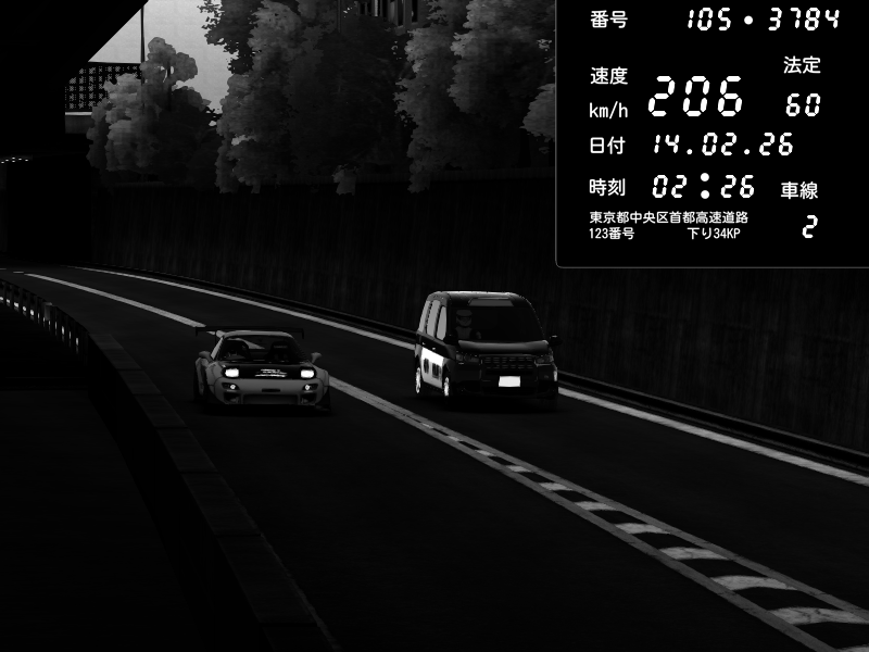 | 2026/02/14 02:26 | C1外回り 京橋 | 206 / 60 km/h | Mazda RX-7 FD3S FEED Afflux GT3 | CAPTURE |