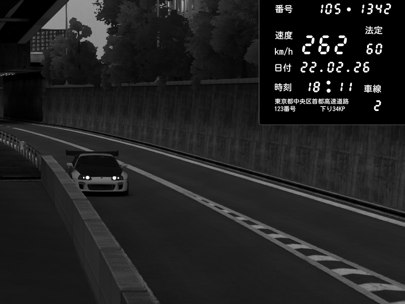 | 2026/02/22 18:15 | C1外回り 京橋 | 267 / 60 km/h | Toyota Supra MKIV Time Attack | CAPTURE |