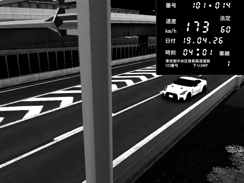 | 2026/04/19 04:02 | C1内回り 竹橋JCT | 173 / 60 km/h | Nissan GT-R NISMO 2017 | CAPTURE |