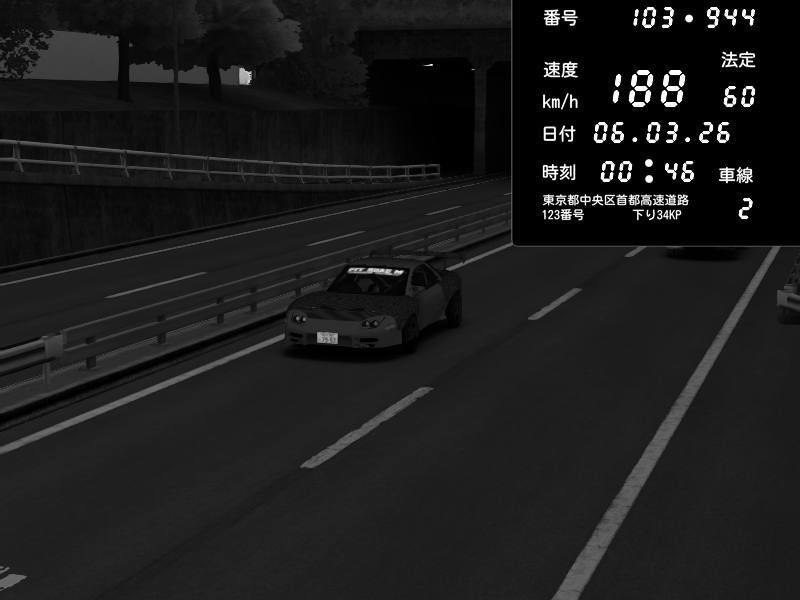 | 2026/03/06 00:47 | C1内回り 京橋 | 184 / 60 km/h | Pit Road M - Mitsubishi GTO Twin Turbo | CAPTURE |
