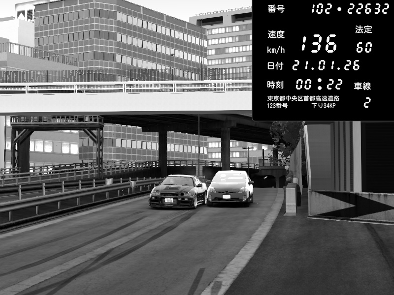 | 2026/01/21 00:22 | C1外回り 新富町 | 136 / 60 km/h | Nissan Skyline GT-R R34 Nismo Omori Factory S1 | CAPTURE |