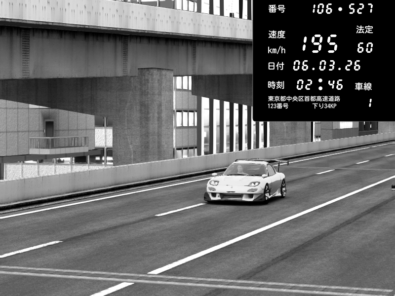 | 2026/03/06 02:44 | C1内回り 京橋 | 166 / 60 km/h | Mazda RX-7 FD3S RE Amemiya | CAPTURE |