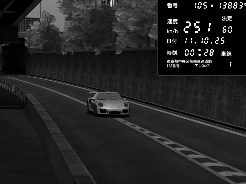 2025/10/11 00:28 | C1外回り 京橋 | 251 / 60 km/h | Porsche 911 GT3 RS | CAPTURE |