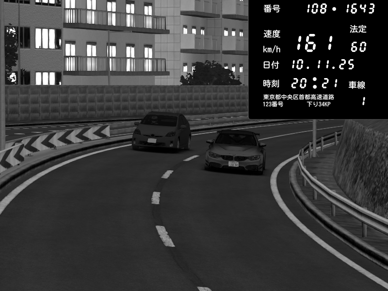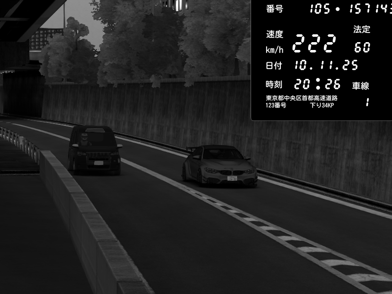 | 2025/11/10 20:30 | C1外回り 新富町 | 167 / 60 km/h | BMW M4 crash.Sp Varis Widebody | CAPTURE |