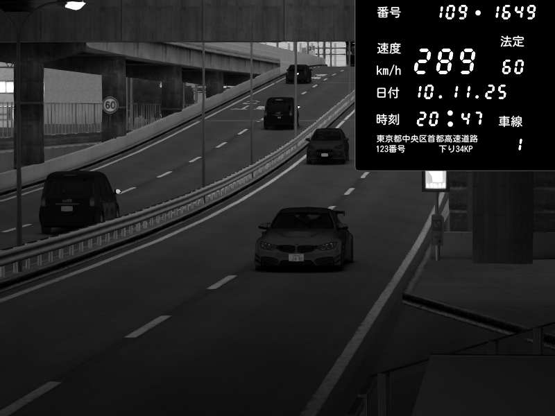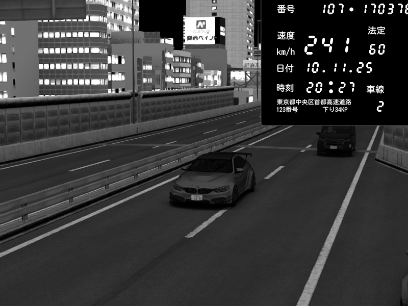| 2025/11/10 20:21 | 4号下り 代々木 | 161 / 60 km/h | BMW M4 crash.Sp Varis Widebody | CAPTURE |