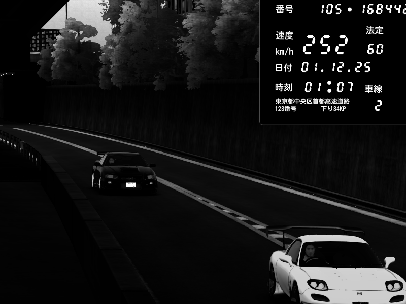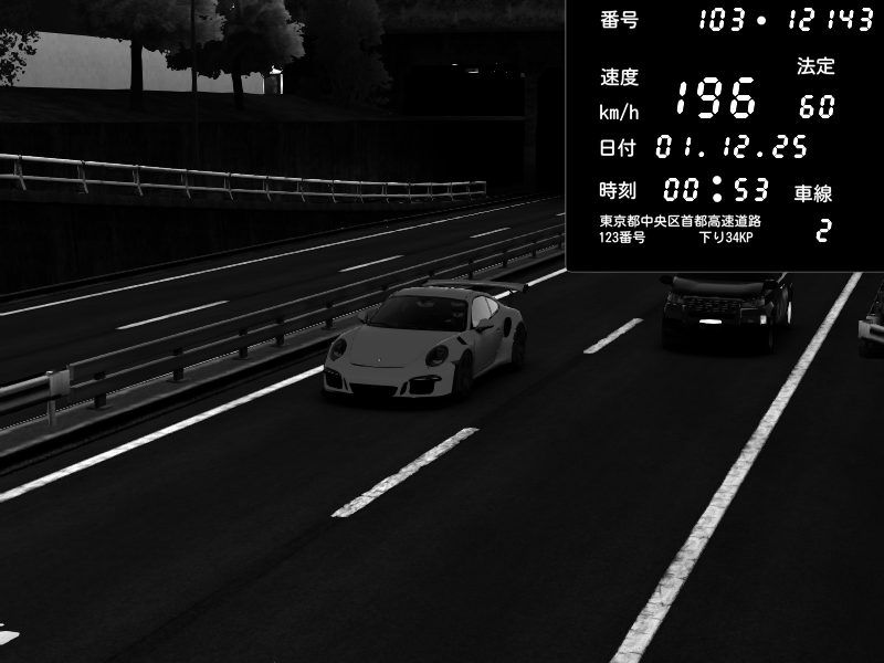 | 2025/12/01 00:53 | C1内回り 銀座 | 196 / 60 km/h | Porsche 911 GT3 RS | CAPTURE |
