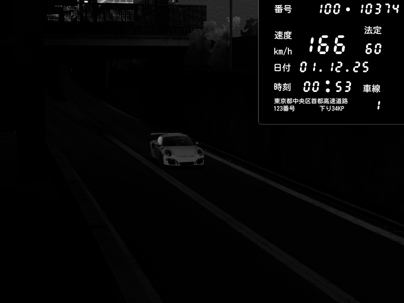 | 2025/12/01 00:53 | C1内回り 京橋 | 166 / 60 km/h | Porsche 911 GT3 RS | CAPTURE |