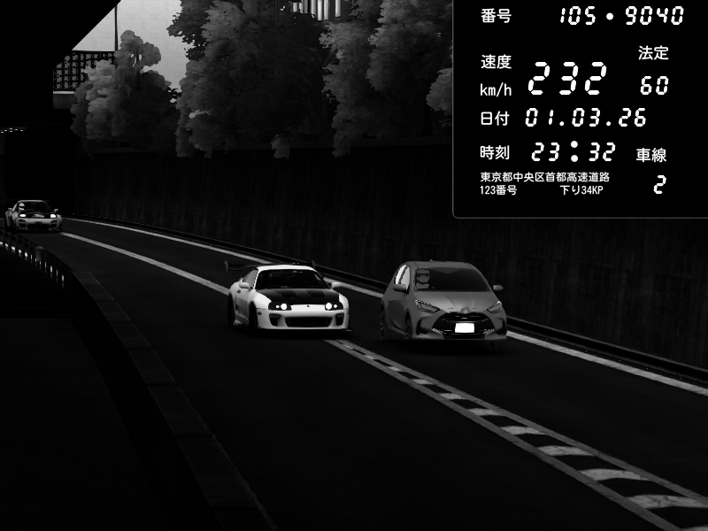| 2026/03/01 22:42 | C1外回り 新富町 | 108 / 60 km/h | Nissan GT-R NISMO 2017 | CAPTURE |