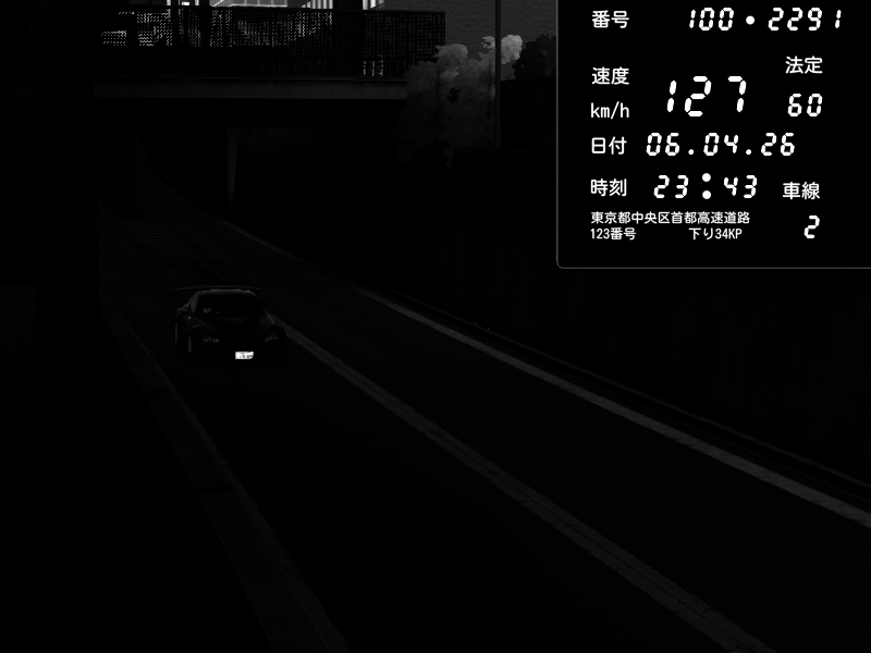 | 2026/04/06 23:43 | C1内回り 京橋 | 127 / 60 km/h | Honda S2000 Turbo GT1 Amuse (AP1) | CAPTURE |