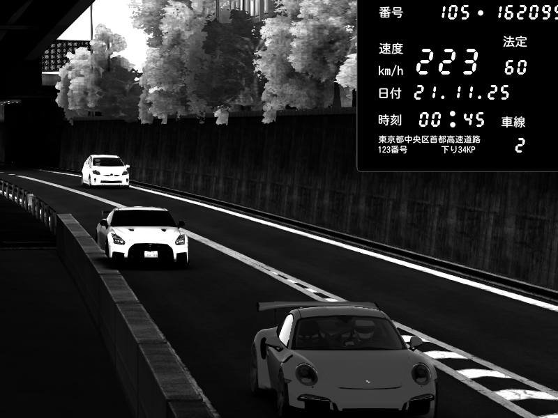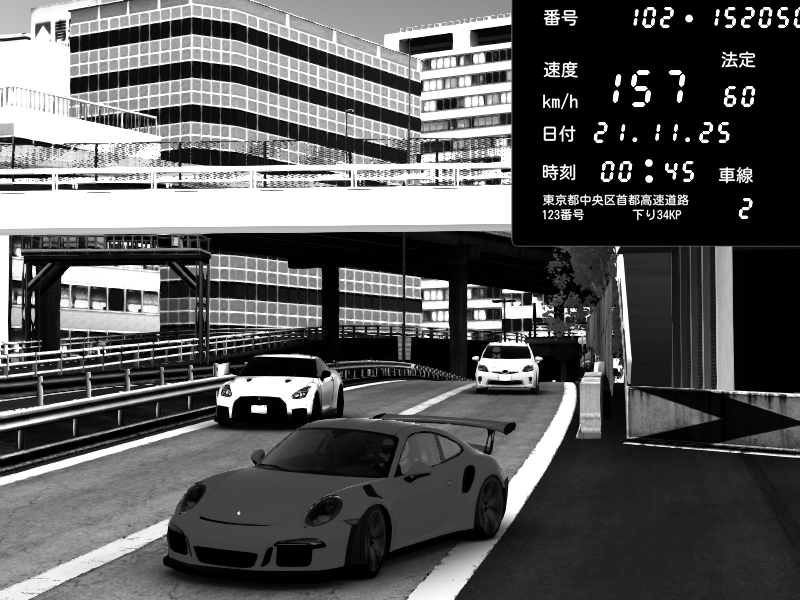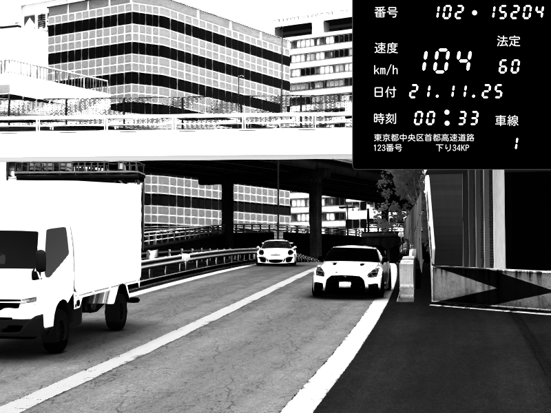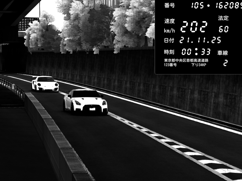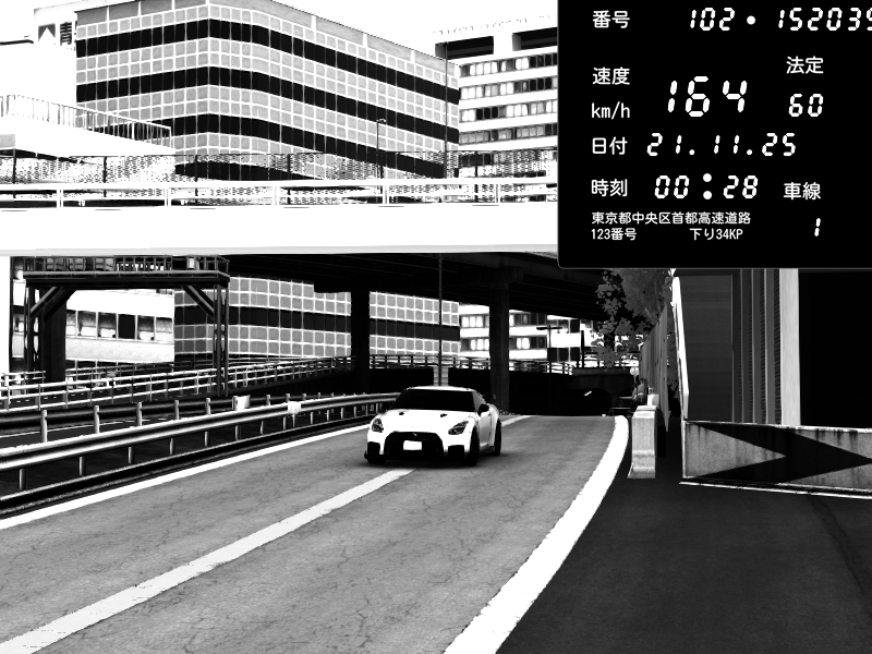 | 2025/11/21 00:33 | C1外回り 新富町 | 104 / 60 km/h | Nissan GT-R NISMO 2017 | CAPTURE |