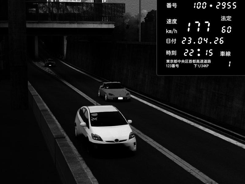 | 2026/04/23 22:15 | C1内回り 京橋 | 177 / 60 km/h | Honda S2000 (AP2 - Legendary) | CAPTURE |