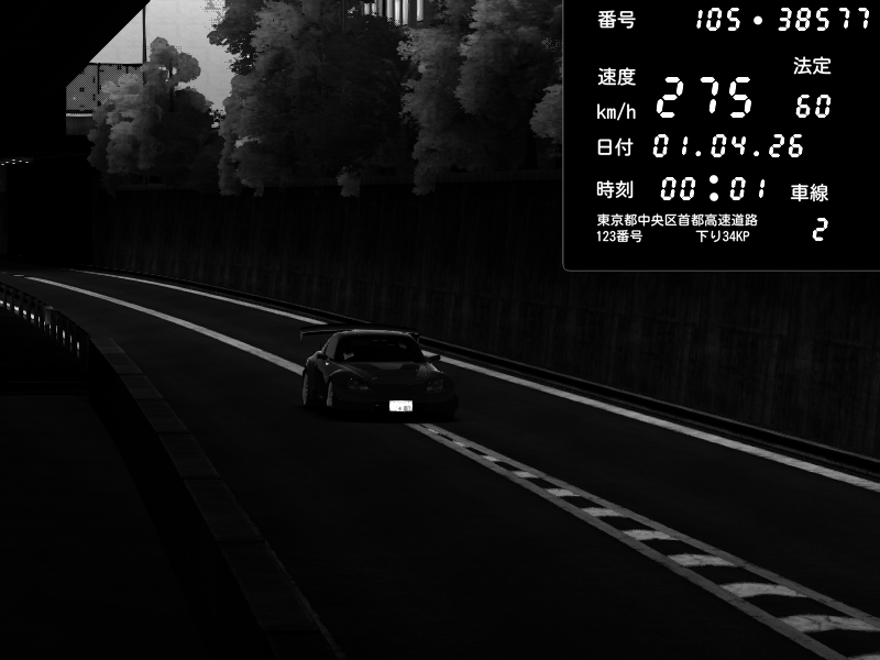 | 2026/04/01 00:01 | C1外回り 京橋 | 275 / 60 km/h | Honda S2000 Turbo GT1 Amuse (AP1) | CAPTURE |
