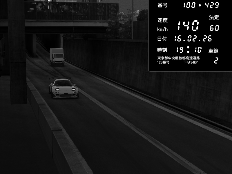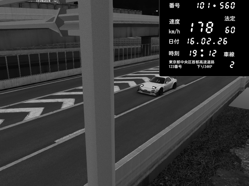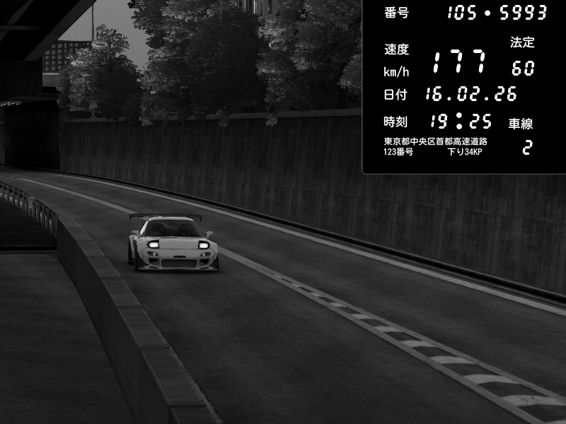 | 2026/02/16 19:34 | C1内回り 京橋 | 176 / 60 km/h | Mazda RX-7 FD3S FEED Afflux GT3 | CAPTURE |