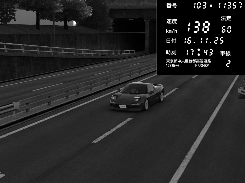 | 2025/11/16 17:43 | C1内回り 銀座 | 138 / 60 km/h | Honda NSX [NA1] PVLSX | CAPTURE |
