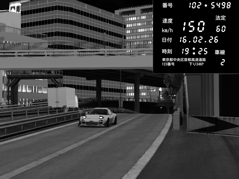 | 2026/02/16 19:36 | C1内回り 竹橋JCT | 168 / 60 km/h | Mazda RX-7 FD3S FEED Afflux GT3 | CAPTURE |