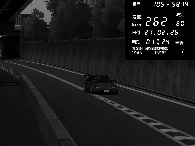| 2026/02/27 01:24 | C1外回り 京橋 | 262 / 60 km/h | Honda S2000 (AP2 - Legendary) | CAPTURE |
