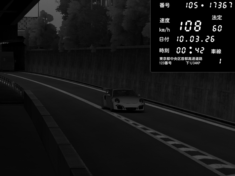 | 2026/03/10 00:42 | C1外回り 京橋 | 108 / 60 km/h | Porsche 911 GT3 RS | CAPTURE |