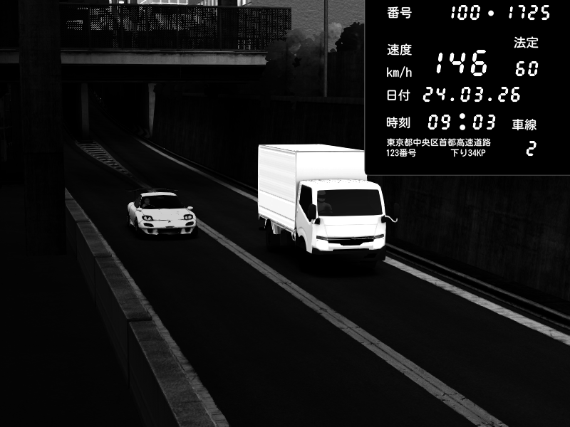 | 2026/01/17 23:56 | 4号下り 代々木 | 117 / 60 km/h | Nissan Skyline GTR R33 (S3 - Wangan) | CAPTURE |