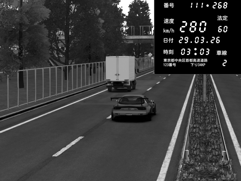 | 2026/03/29 02:58 | C1内回り 竹橋JCT | 187 / 60 km/h | Mazda RX-7 FD3S FEED Afflux GT3 | CAPTURE |