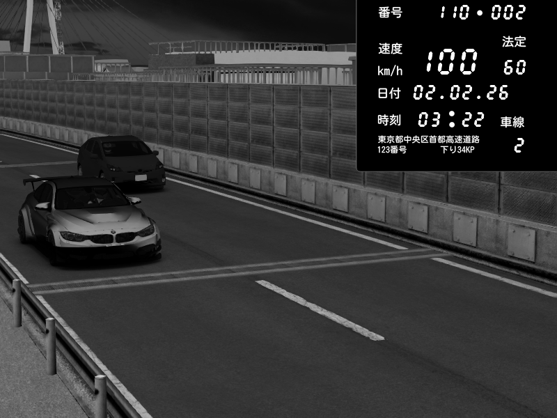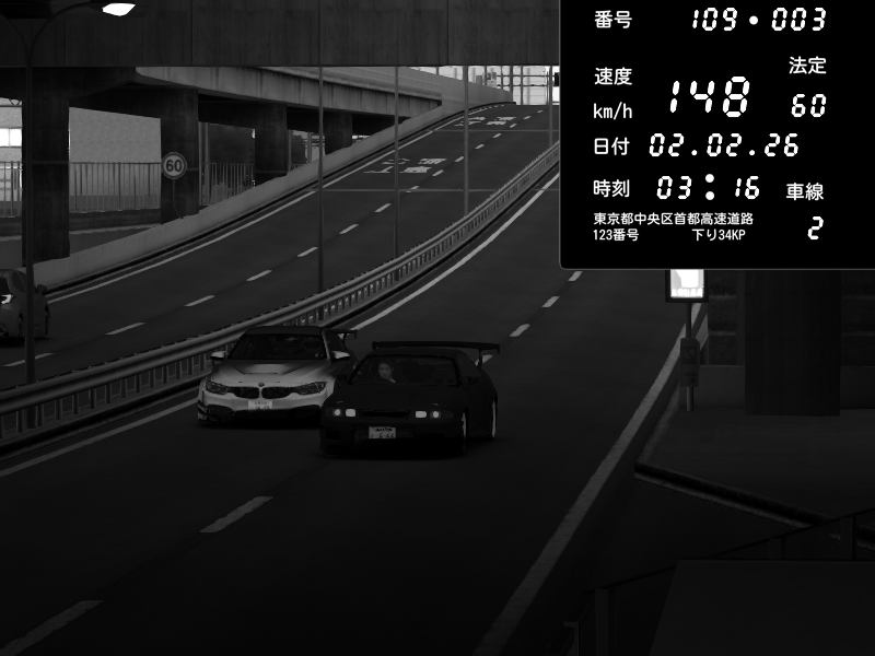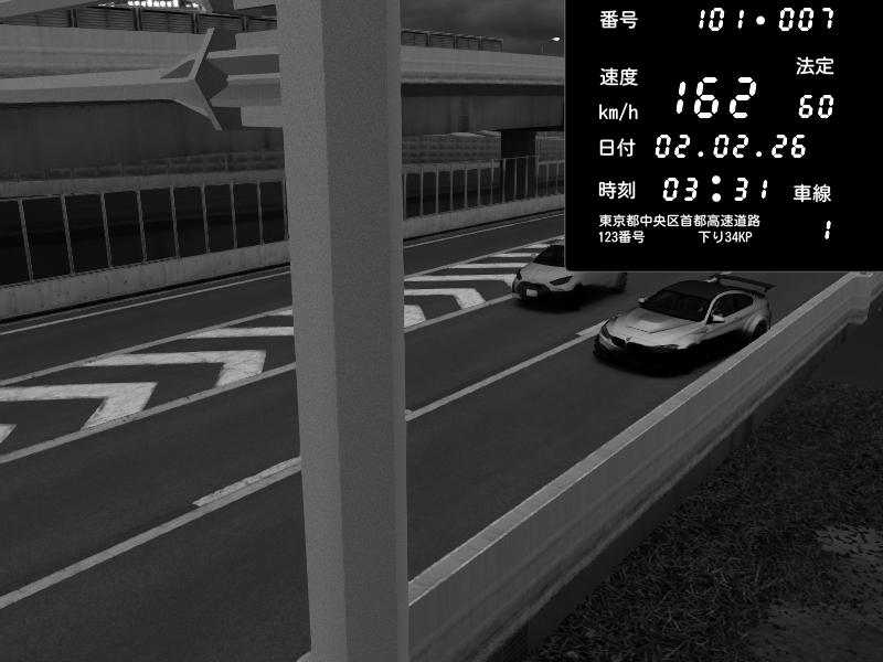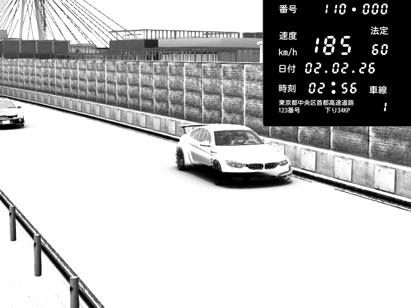 | 2026/02/02 02:56 | K1上り 羽田 | 185 / 60 km/h | BMW M4 crash.Sp Varis Widebody | CAPTURE |