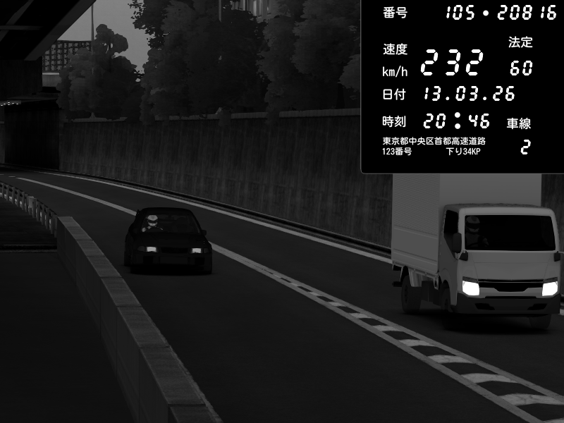 | 2026/03/13 20:46 | C1ε€εγ δΊ¬ζ© | 232 / 60 km/h | Mitsubishi Lancer Evolution V Wangan Spec | CAPTURE |