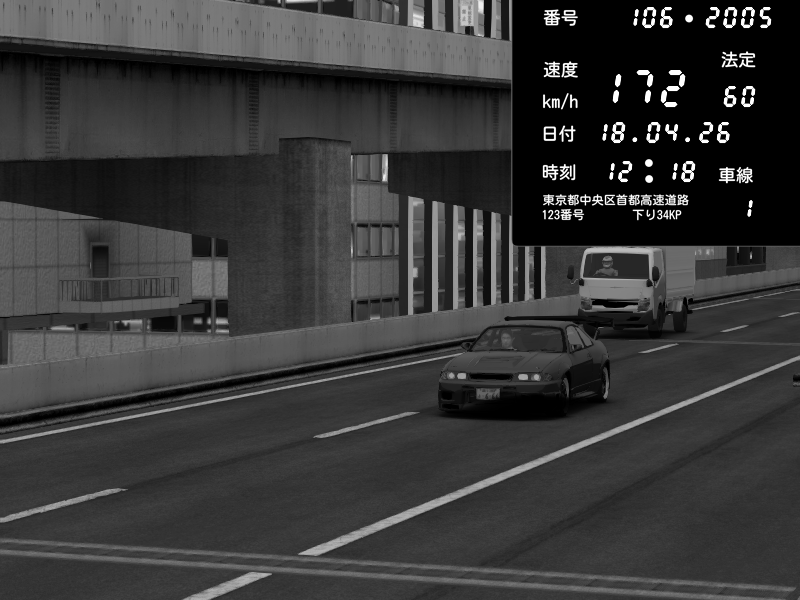 | 2026/04/18 12:22 | C1内回り 京橋 | 170 / 60 km/h | Nissan Skyline GTR R33 (S3 - Wangan) | CAPTURE |