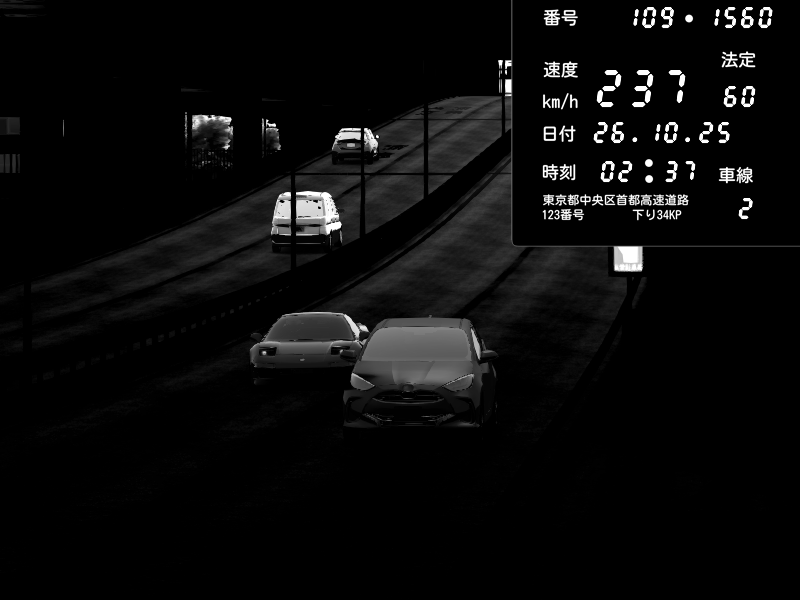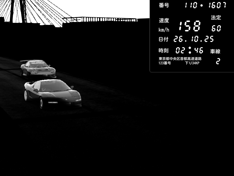 | 2025/10/26 02:46 | K1上り 羽田 | 158 / 60 km/h | Honda NSX [NA1] PVLSX | CAPTURE |