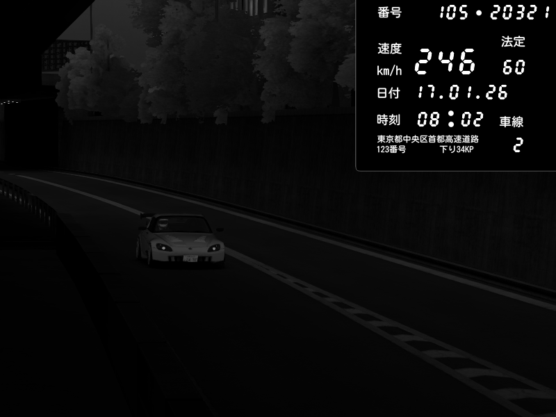 | 2026/01/17 08:02 | C1外回り 京橋 | 246 / 60 km/h | Honda S2000 (AP2 - Legendary) | CAPTURE |