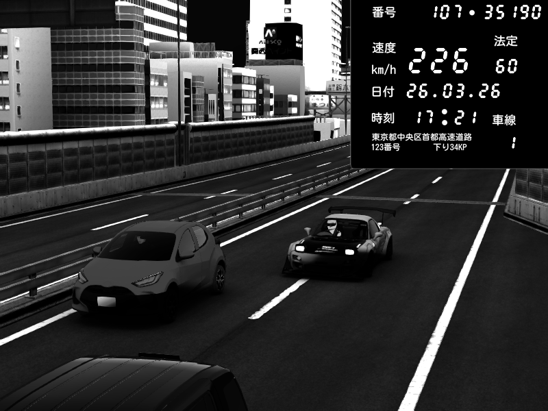 | 2026/03/26 17:11 | C1外回り 芝公園 | 190 / 60 km/h | Mazda RX-7 FD3S FEED Afflux GT3 | CAPTURE |