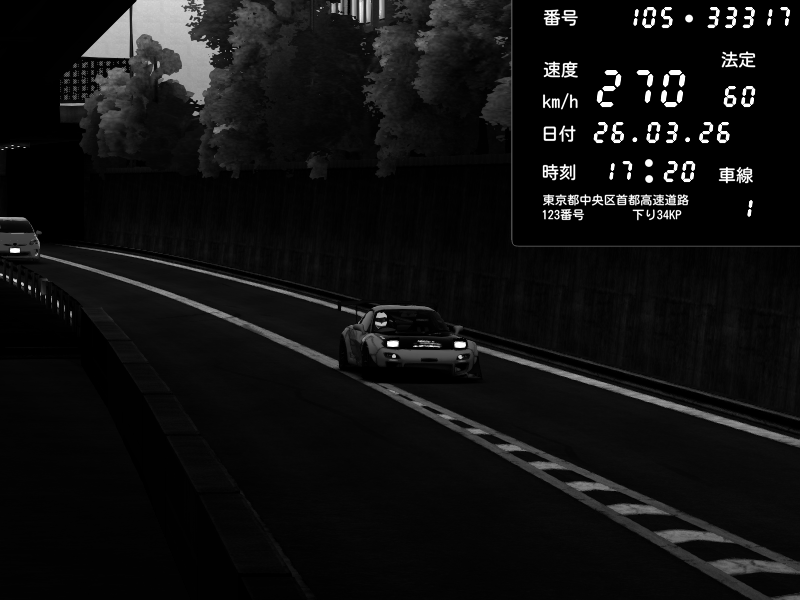 | 2026/03/26 17:20 | C1外回り 新富町 | 121 / 60 km/h | Mazda RX-7 FD3S FEED Afflux GT3 | CAPTURE |