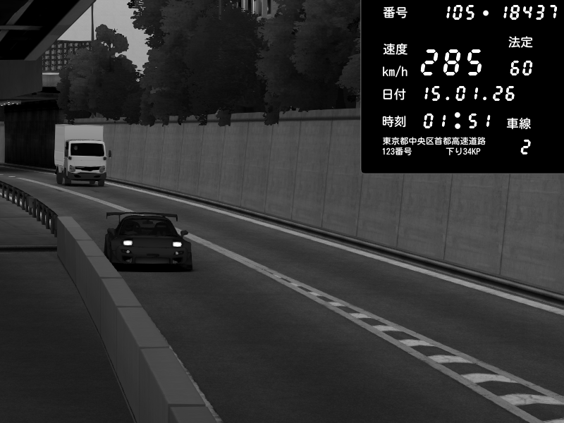 | 2026/01/15 01:48 | C1外回り 京橋 | 286 / 60 km/h | Mazda RX-7 FD3S FEED Afflux GT3 | CAPTURE |