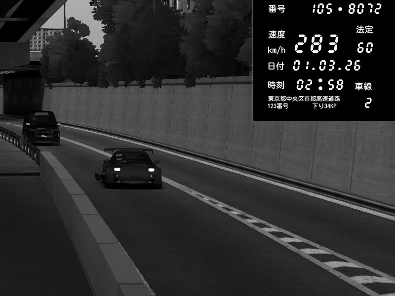 | 2026/03/01 02:54 | C1外回り 京橋 | 281 / 60 km/h | Mazda RX-7 FD3S FEED Afflux GT3 | CAPTURE |