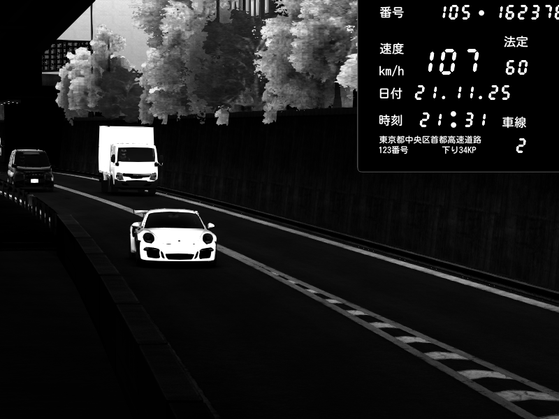 | 2025/11/21 21:31 | C1外回り 京橋 | 107 / 60 km/h | Porsche 911 GT3 RS | CAPTURE |