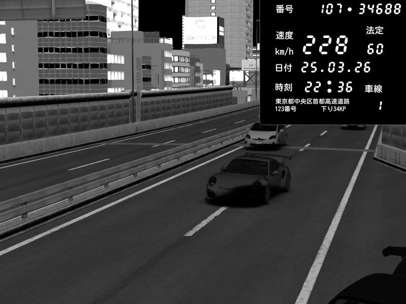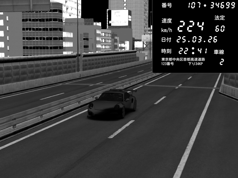 | 2026/03/25 22:36 | C1外回り 芝公園 | 228 / 60 km/h | Porsche 911 GT3 RS | CAPTURE |
