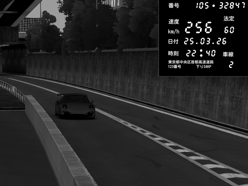 | 2026/03/25 22:40 | C1外回り 京橋 | 256 / 60 km/h | Porsche 911 GT3 RS | CAPTURE |