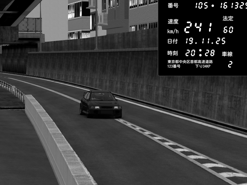 | 2025/11/19 20:28 | C1外回り 新富町 | 126 / 60 km/h | Mitsubishi Lancer Evolution V Wangan Spec | CAPTURE |