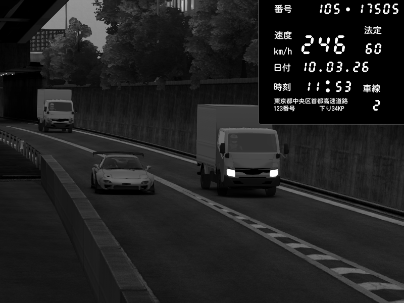 | 2026/03/10 11:53 | C1外回り 京橋 | 246 / 60 km/h | Mazda RX-7 FD3S FEED Afflux GT3 | CAPTURE |