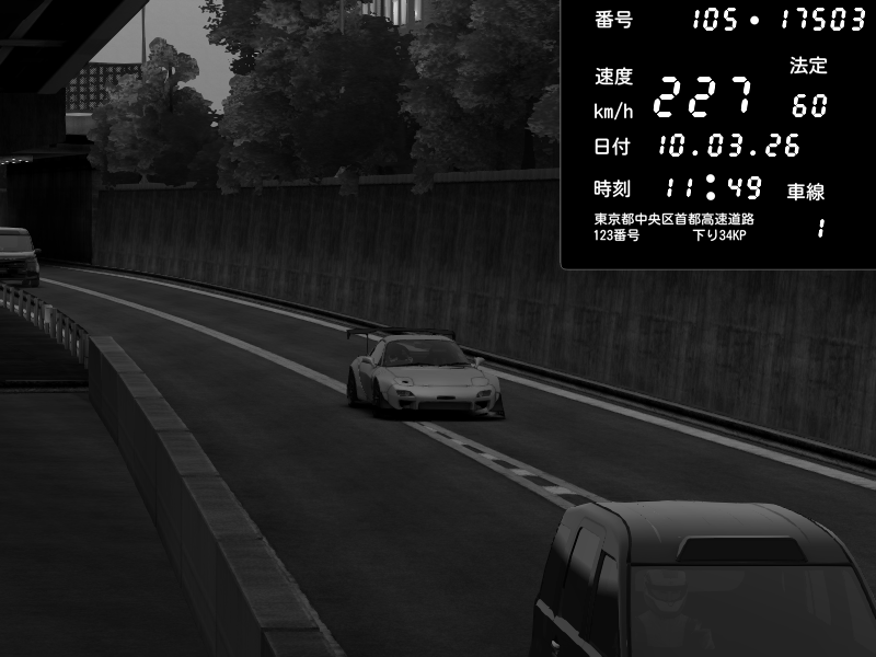 | 2026/03/10 11:49 | C1外回り 京橋 | 227 / 60 km/h | Mazda RX-7 FD3S FEED Afflux GT3 | CAPTURE |
