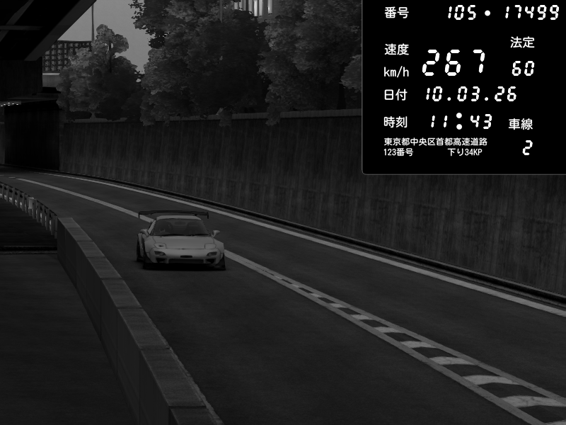 | 2026/03/10 11:43 | C1外回り 京橋 | 267 / 60 km/h | Mazda RX-7 FD3S FEED Afflux GT3 | CAPTURE |