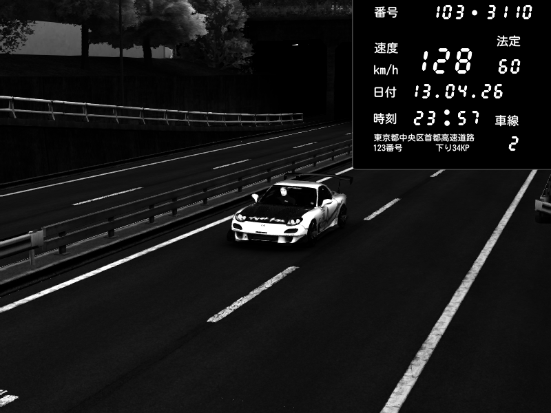 | 2026/04/13 23:57 | C1内回り 銀座 | 128 / 60 km/h | Mazda RX-7 FD3S RE Amemiya | CAPTURE |
