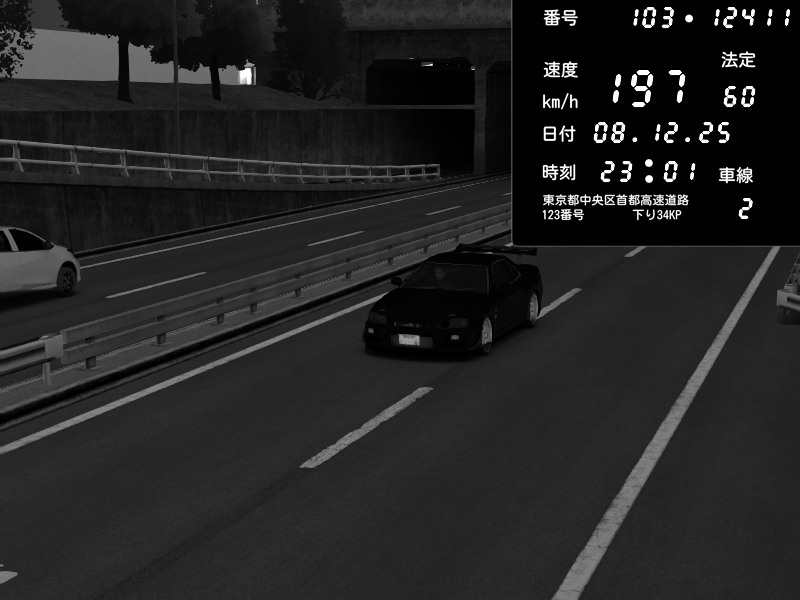 | 2025/12/08 23:01 | C1内回り 銀座 | 197 / 60 km/h | Nissan Skyline GT-R R34 Nismo Omori Factory S1 | CAPTURE |