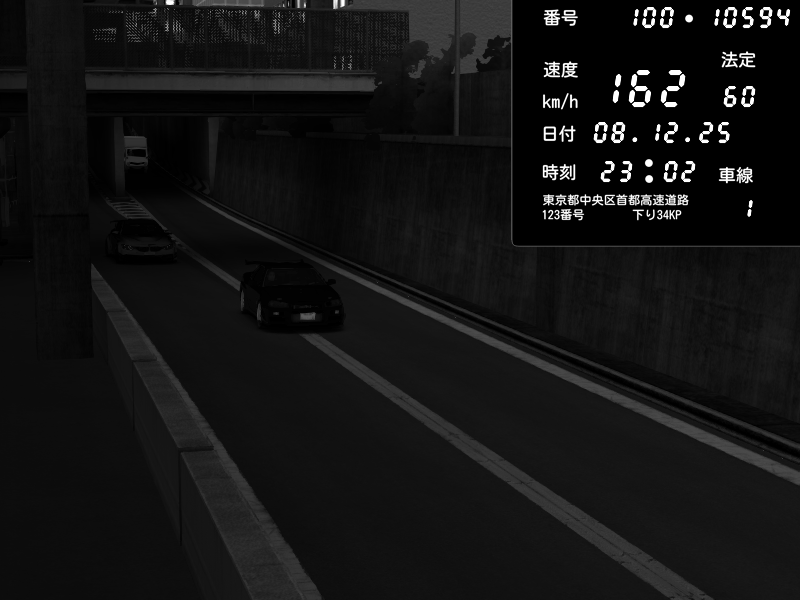 | 2025/12/08 22:30 | C1内回り 京橋 | 143 / 60 km/h | Toyota Supra MKIV Time Attack | CAPTURE |