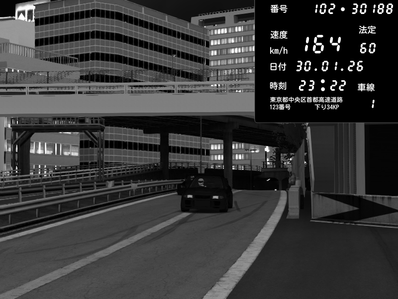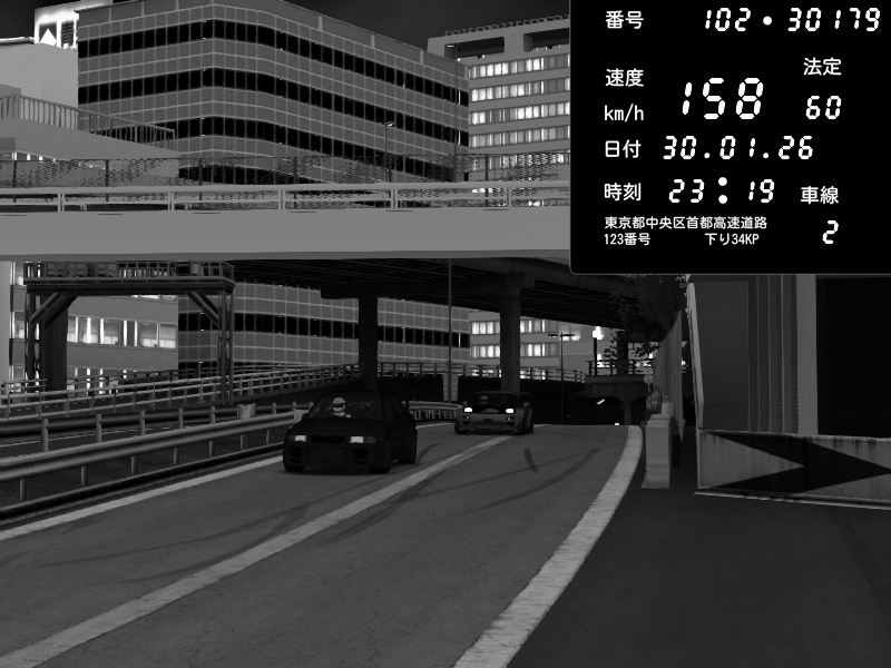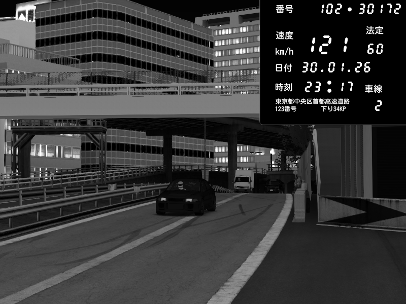 | 2026/01/30 23:19 | C1外回り 京橋 | 232 / 60 km/h | Mitsubishi Lancer Evolution V Wangan Spec | CAPTURE |