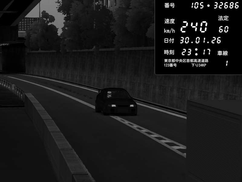 | 2026/01/30 23:17 | C1外回り 京橋 | 240 / 60 km/h | Mitsubishi Lancer Evolution V Wangan Spec | CAPTURE |