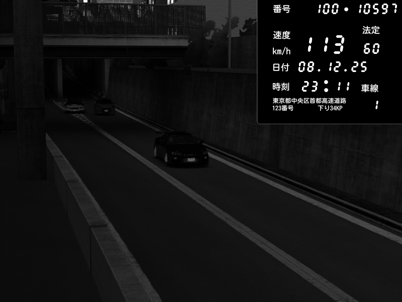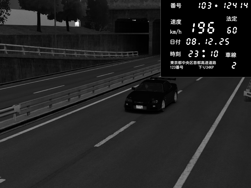 | 2025/12/08 23:10 | C1内回り 銀座 | 196 / 60 km/h | Nissan Skyline GT-R R34 Nismo Omori Factory S1 | CAPTURE |