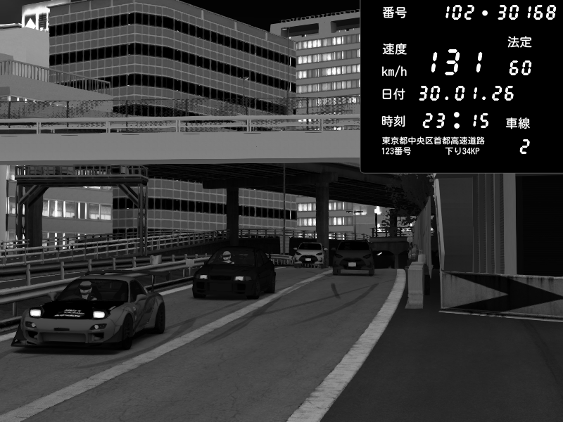 | 2026/01/30 23:15 | C1外回り 新富町 | 131 / 60 km/h | Mitsubishi Lancer Evolution V Wangan Spec | CAPTURE |