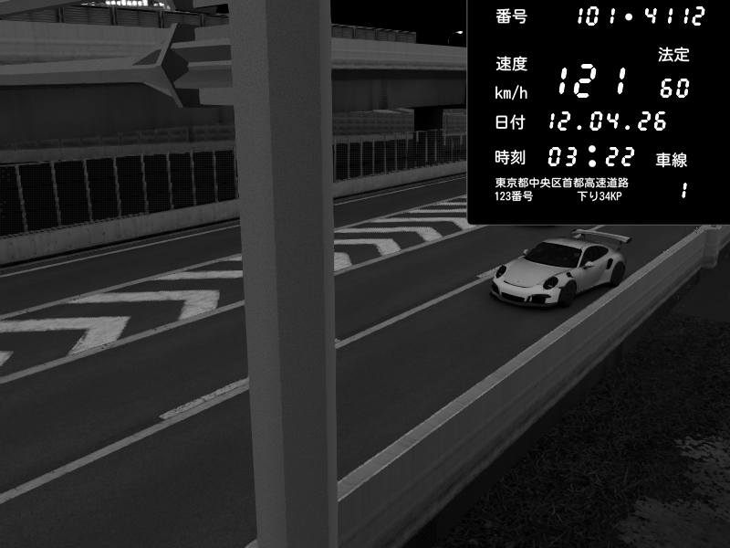 | 2026/04/12 03:23 | C1内回り 竹橋JCT | 121 / 60 km/h | Porsche 911 GT3 RS | CAPTURE |
